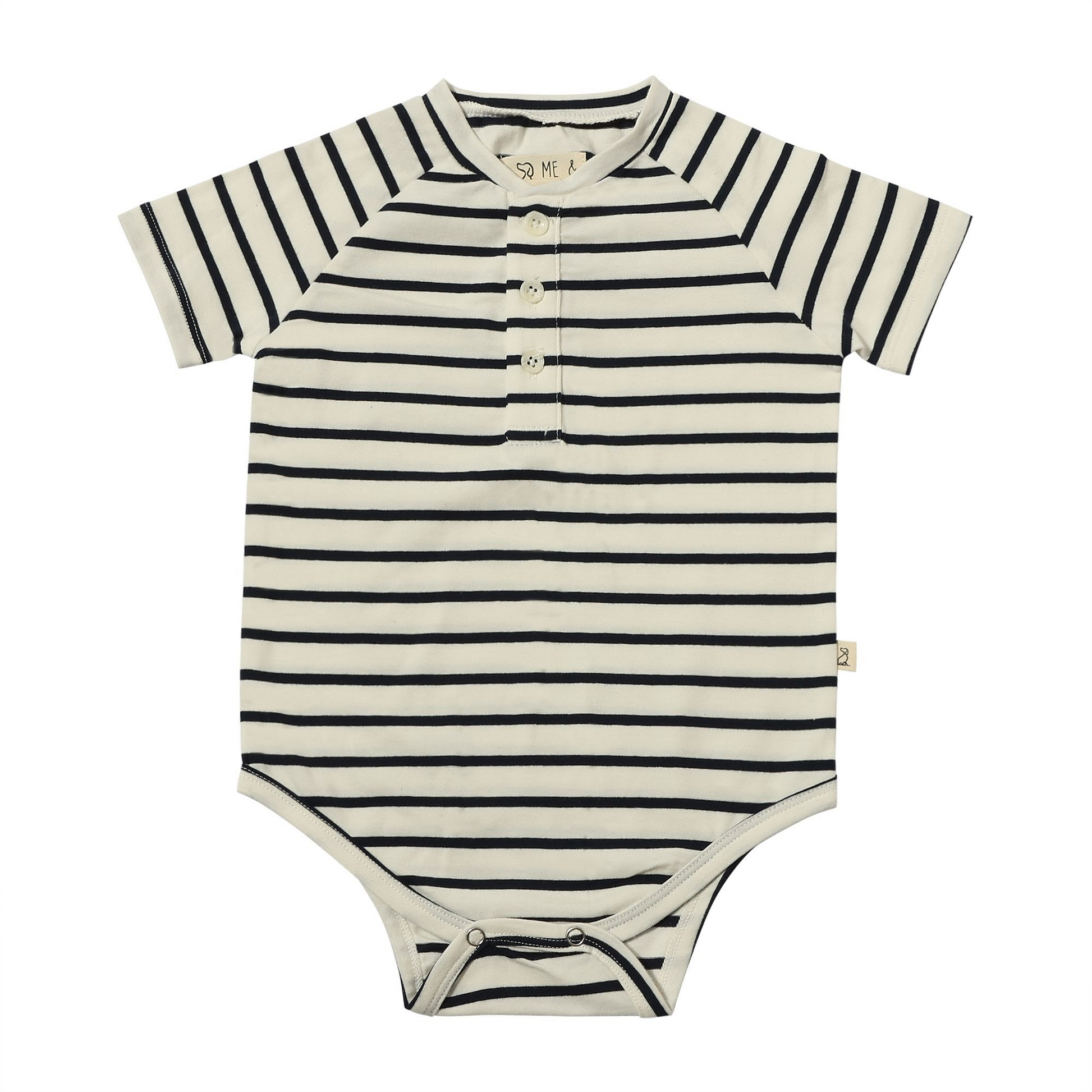 Add some modern style to your baby's closet with this black and white striped raglan onesie. Perfect for playdates, outings, or just lounging around, it'll keep them comfy and cute.